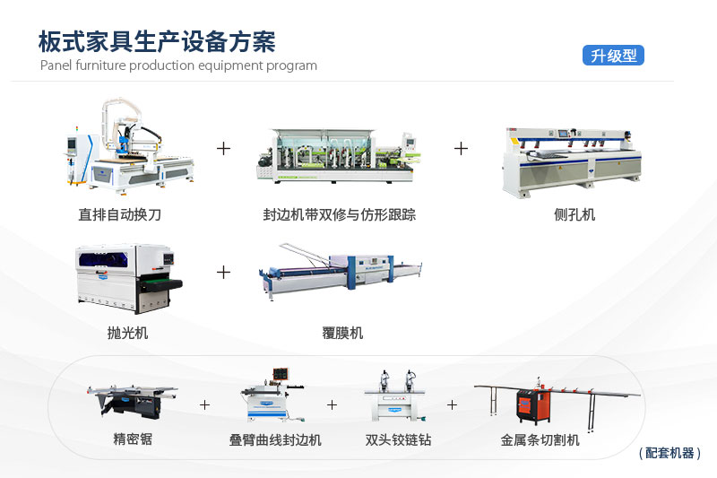 柜体/柜门(吸塑/平板)出产处理计划首要由直排换刀加工中间、封边机、侧孔机、抛光机、覆膜机、紧密锯、叠臂封边机、双主轴搭钮钻、金属条切割机构成,可知足全屋定制厂家的出产加工,机械团体矫捷,的工艺变化无常,打造的适用业主整厂许要的积极主动化原产表现形式。